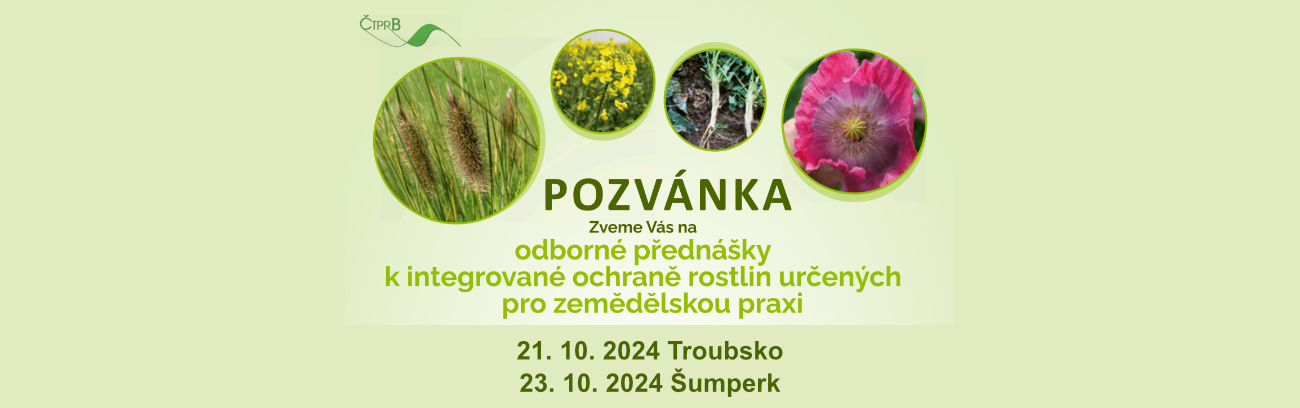 Zveme Vás na Cyklus odborných přednášek k integrované ochraně rostlin určených pro zemědělskou praxi, kterého se můžete zúčastnit 21. 10. 2024 v Troubsku nebo 23. 10. 2024 v Šumperku.