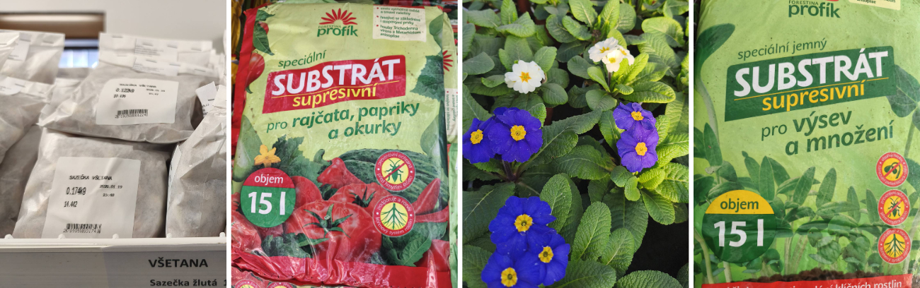 Cibule sazečka, supresivní substráty pro výsevy, primule